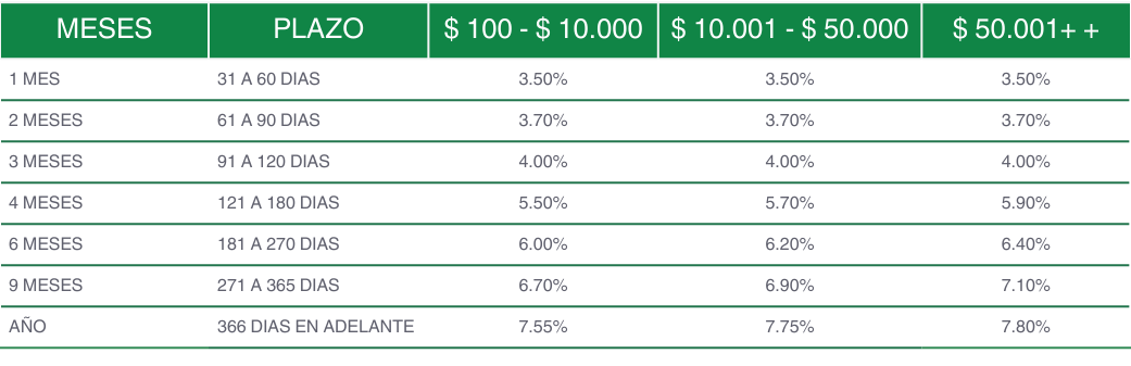 - Tasa dependiendo del monto y plazo colocado.
